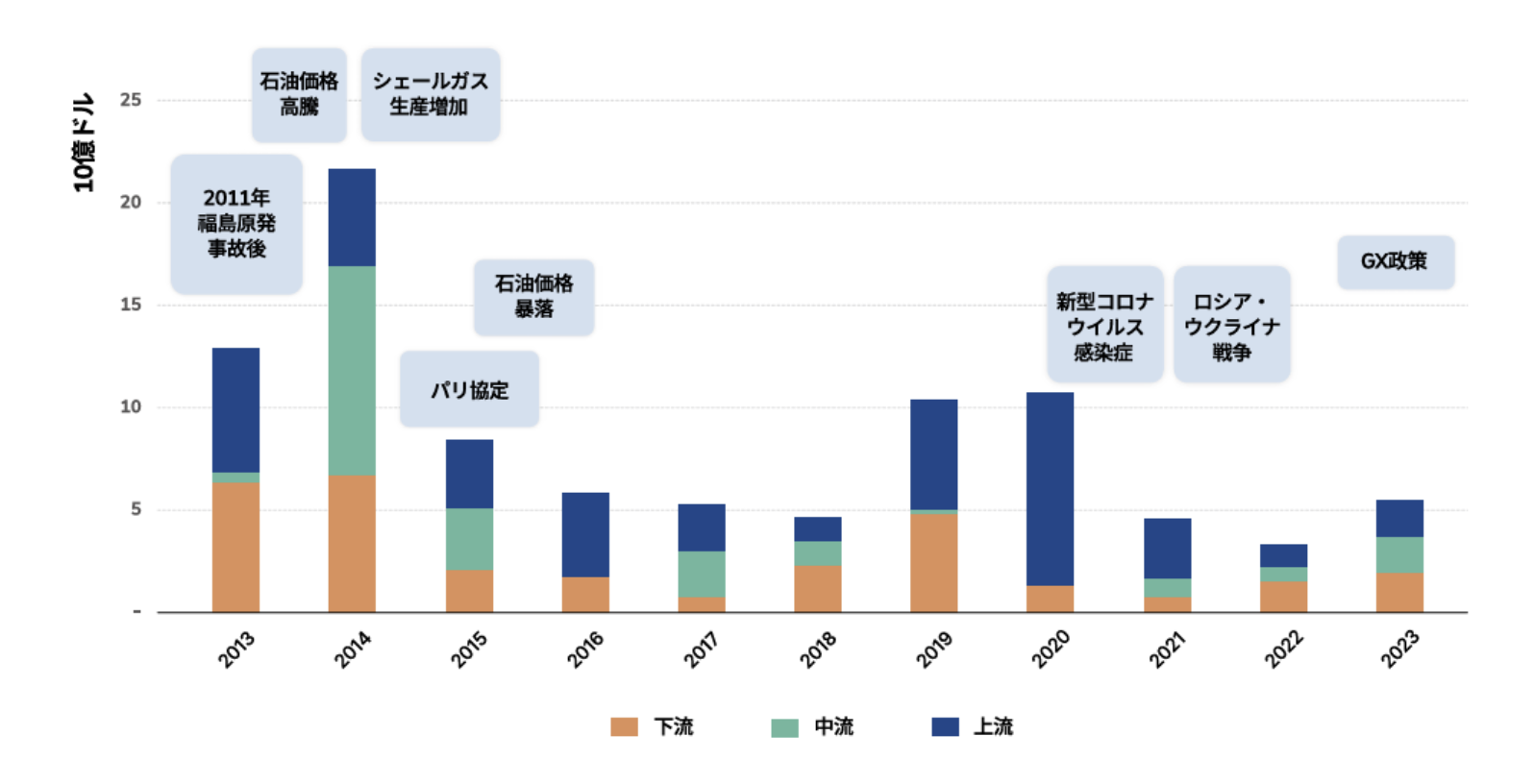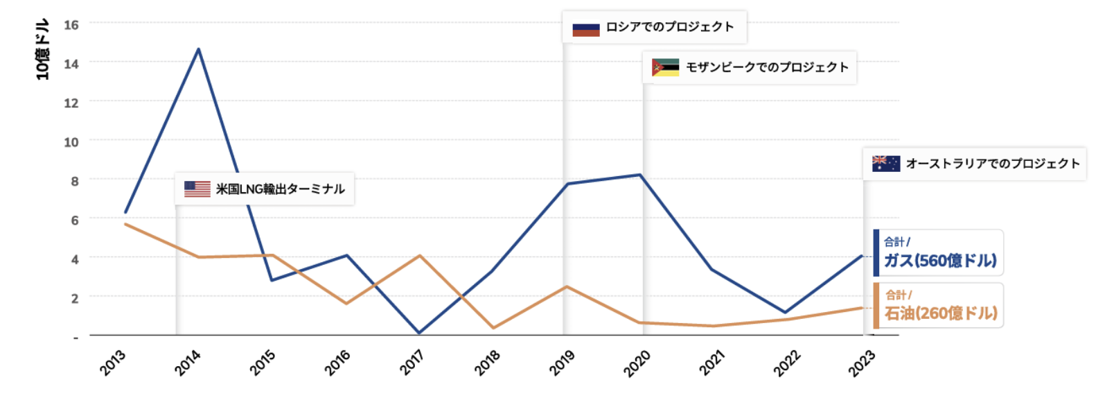 会計年度別の石油・ガスプロジェクトへの投融資額の内訳
