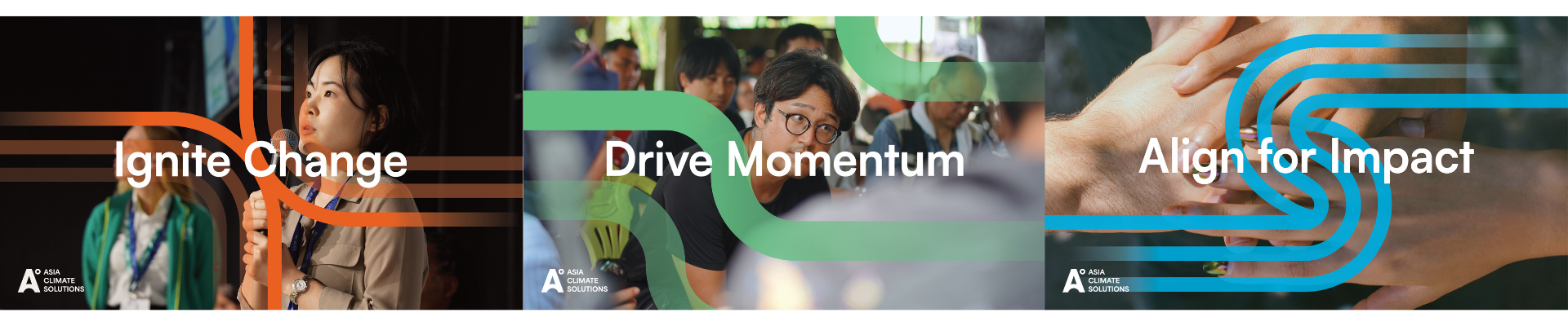 올해 ACS의 목표는 분명합니다. 변화의 불씨를 지피고, 추진력을 높이며, 영향력을 하나로 모으는 것. 우리는 중요한 대화를 시작하고, 지구와 인류를 옭아매온 낡은 시스템에 도전하고 있습니다. 또한 정부부터 지역 공동체까지 아시아 전역의 다양한 이해관계자들과 협력하며 약속을 행동으로 바꾸는 추진력을 만들어갑니다. 나아가 “아시아가 세상에 새로운 에너지의 길을 보여준다”는 하나의 최종 목표를 위해 각자의 전략과 목표를 하나로 모으고 있습니다.