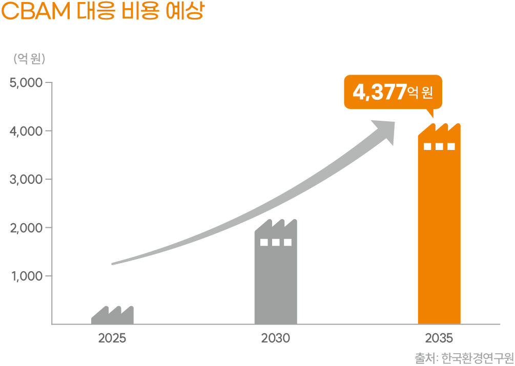 EU는 2026년부터 탄소를 많이 배출해 만든 제품에 추가 비용을 부과해요.* 이로 인해 국내 기업이 부담할 금액은 매년 평균 3000억 원에 이를 것으로 예상돼요.