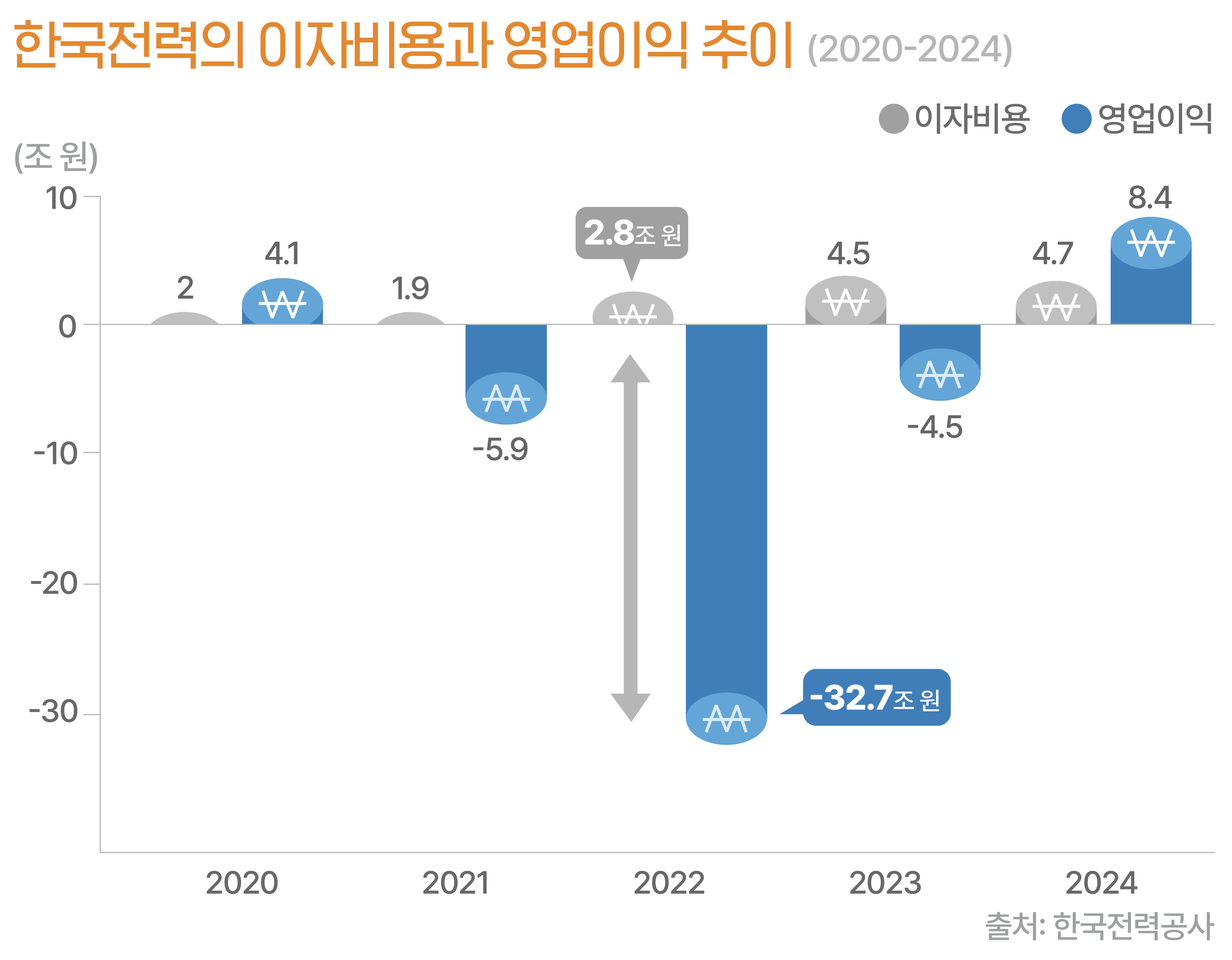 한전의 부채는 약 205조 원, 무려 국가 부채의 12% 달해요. 이자비용만 4조 원으로, 하루에만 120억 원이에요. 다 우리의 전기요금으로 갚아야 하고요.