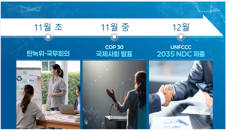 공청회 이후 정부는 11월 초 탄소중립녹색성장위원회 심의를 거쳐 국무회의에서 NDC를 확정하고, COP30에서 발표한 뒤, 12월에 UNFCCC에 제출한다는 계획.