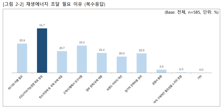 RE100협의체 유관 기업 담당자 585명 설문…PPA 기피 이유 2순위는 ‘망 이용요금 제도 불신’