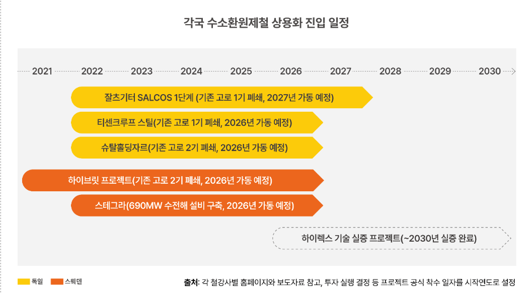 그림 4. 국가별 수소환원제철 상용화 진입 일정