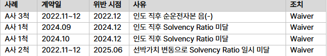 표1. 2021-2025년 수출입선박금융 중 재무약정 위반 및 조건 변경 4건 개요