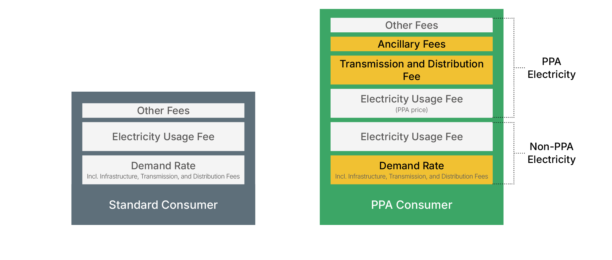 Figure 2. Electricity fee structure for regular users and direct PPA users in South Korea
