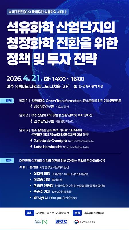 [UNFCCC 기후 주간 & K-GX 주간 석유화학 세미나] 석유화학 산업단지의 청정화학 전환을 위한 정책 및 투자 전략